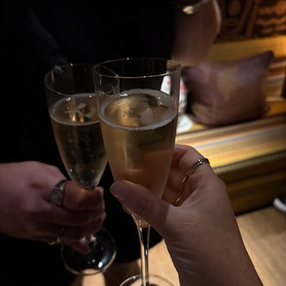 In the beautifully haunting Crimson Bar in The Soho Hotel in London, we sipped champagne and tried ghoulish grub surrounded by monster heads and creepy props galore before heading into the venue’s beautiful cinema room. This is where the magic happened… and where we were joined by a very special RIP ahem, VIP.